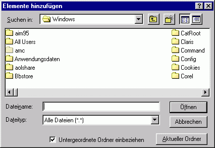 einzelne Dateien auswählen, oder mit aktueller Ordner den ganzen Ordner hinzufügen